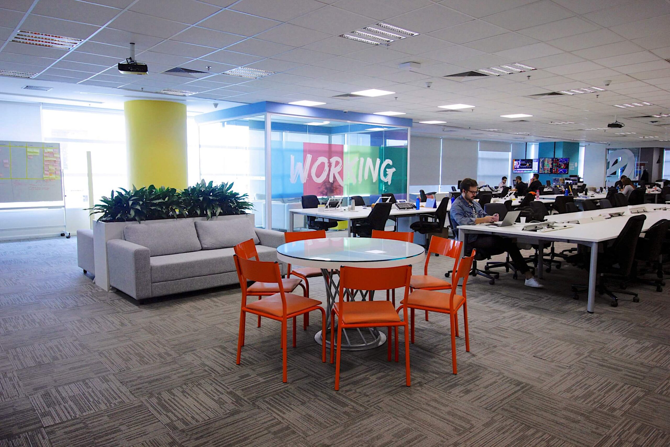 As imagens da obra finalizada revelam como o carpete Fuji Cinza contribui para a atmosfera moderna e acolhedora dos escritórios da Gerdau. Sua tonalidade neutra e o padrão linear das placas harmonizam-se com a paleta de cores vibrantes e os elementos de design contemporâneo presentes no espaço, proporcionando não apenas um visual elegante, mas também conforto acústico e térmico, essenciais para a produtividade. Este projeto reforça nossa capacidade em atender às necessidades específicas de grandes corporações, entregando soluções que transformam ambientes e superam expectativas.