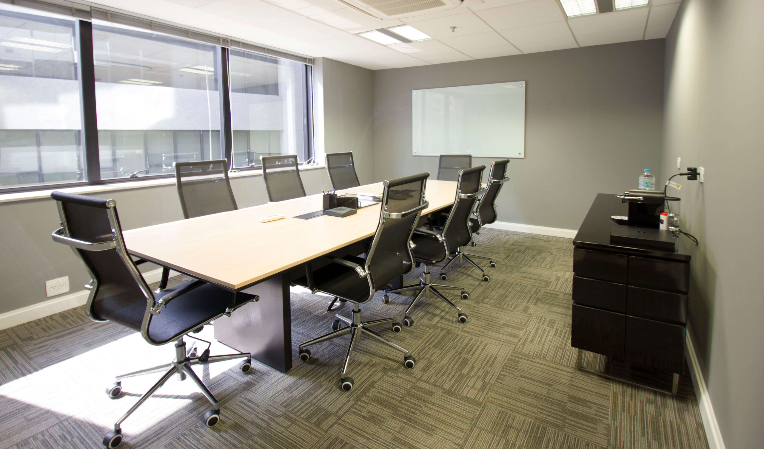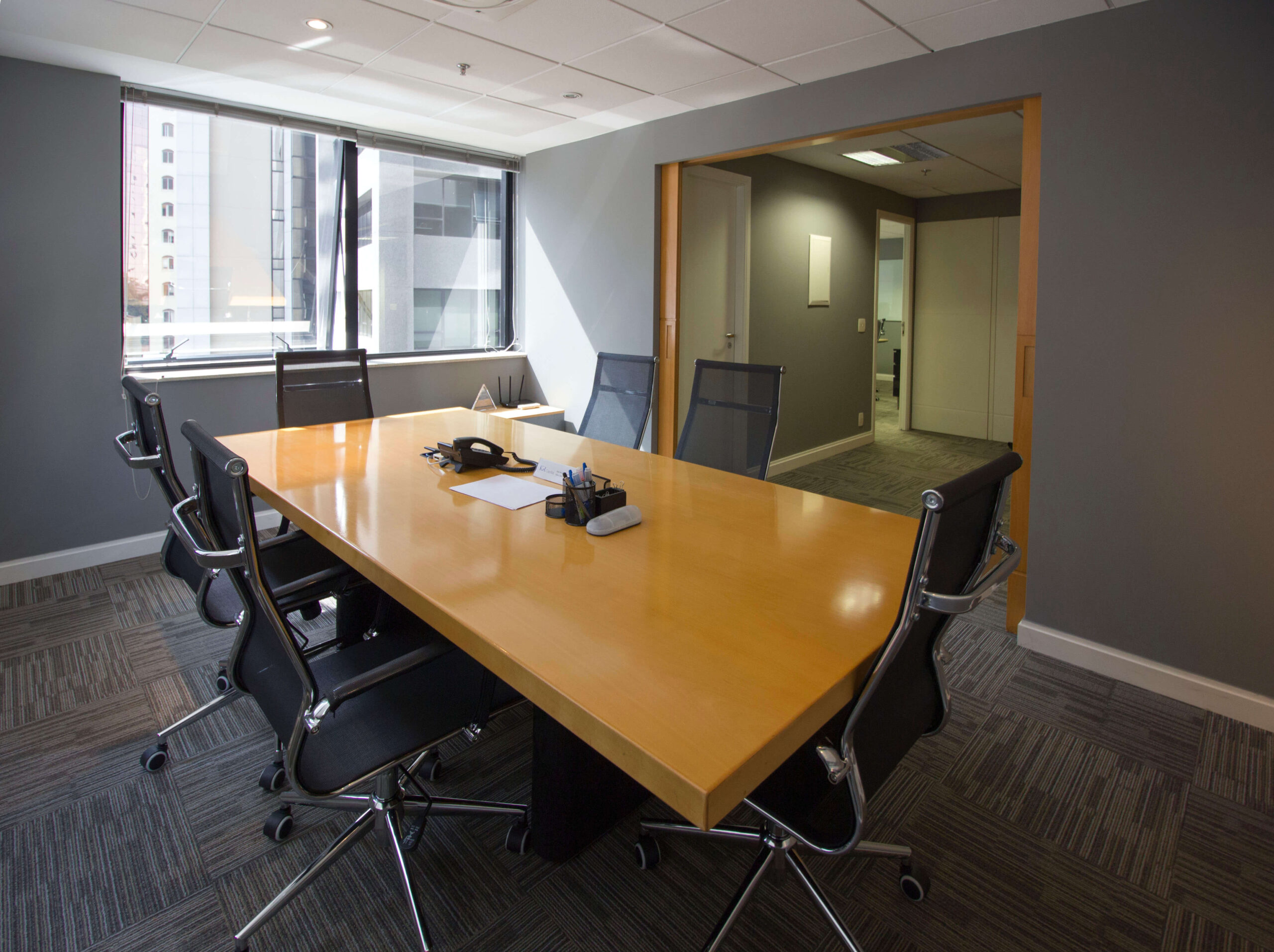 Para transformar o ambiente da empresa e transmitir sofisticação, utilizamos o carpete corporativo Fuji na cor Cinza.